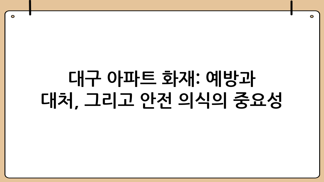 최근 대구에서 발생한 아파트 화재는 우리 사회에 큰 경종을 울렸습니다. 화재는 예측 불가능한 순간에 발생하여 소중한 생명과 재산을 앗아갈 수 있기 때문에, 화재 예방과 발생 시 대처 요령을 숙지하는 것은 매우 중요합니다. 이번 글에서는 대구 아파트 화재 사건을 통해 얻을 수 있는 교훈과 함께, 화재 예방을 위한 실질적인 방법, 그리고 화재 발생 시 효과적인 대처 방안에 대해 자세히 알아보겠습니다.