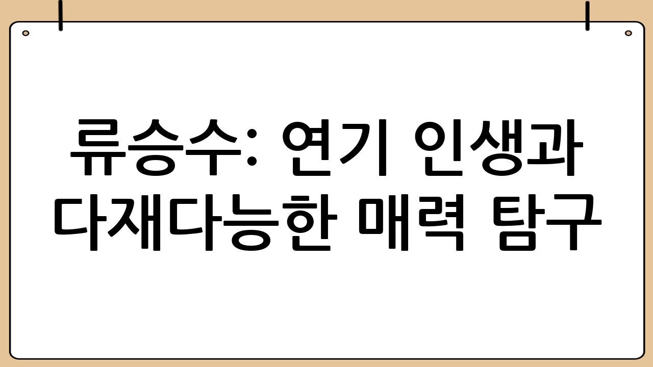류승수: 연기 인생과 다재다능한 매력 탐구
