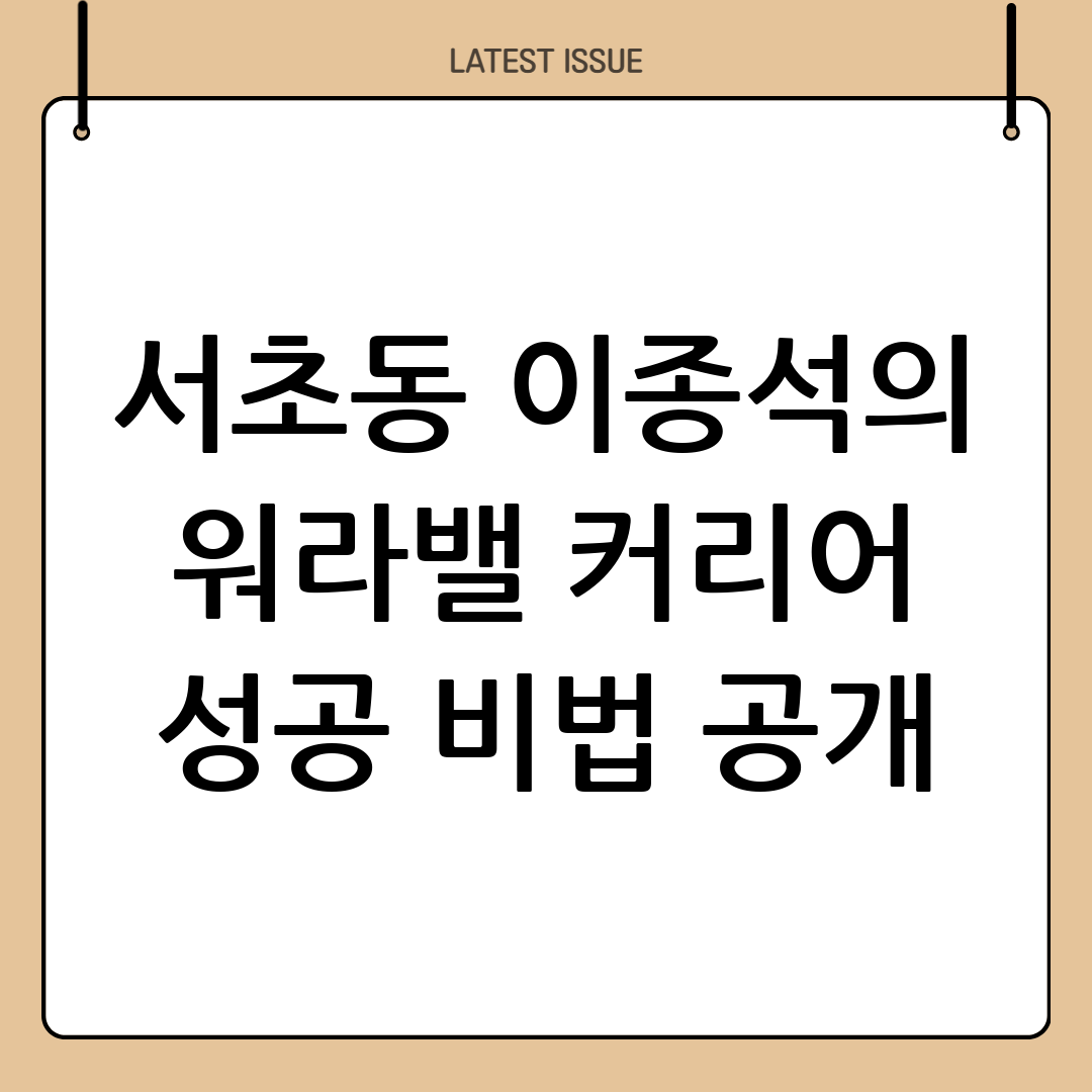 서초동 직장인 이종석 씨의 성공 비결은 무엇일까요? 그는 다음과 같은 요소들을 중요하게 생각합니다.