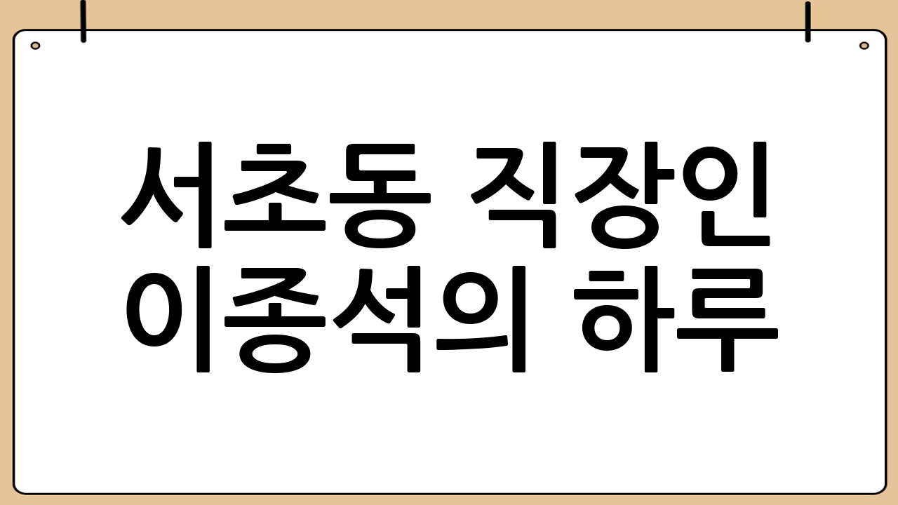 서초동 직장인 이종석의 하루: 성공적인 커리어와 균형 잡힌 삶