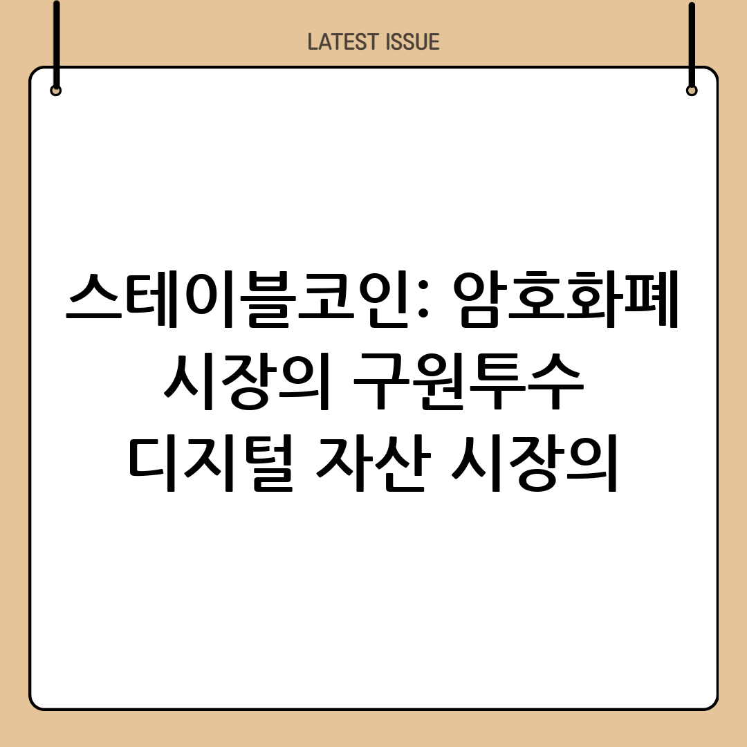 스테이블코인: 디지털 자산 시장의 안정성을 위한 핵심 요소