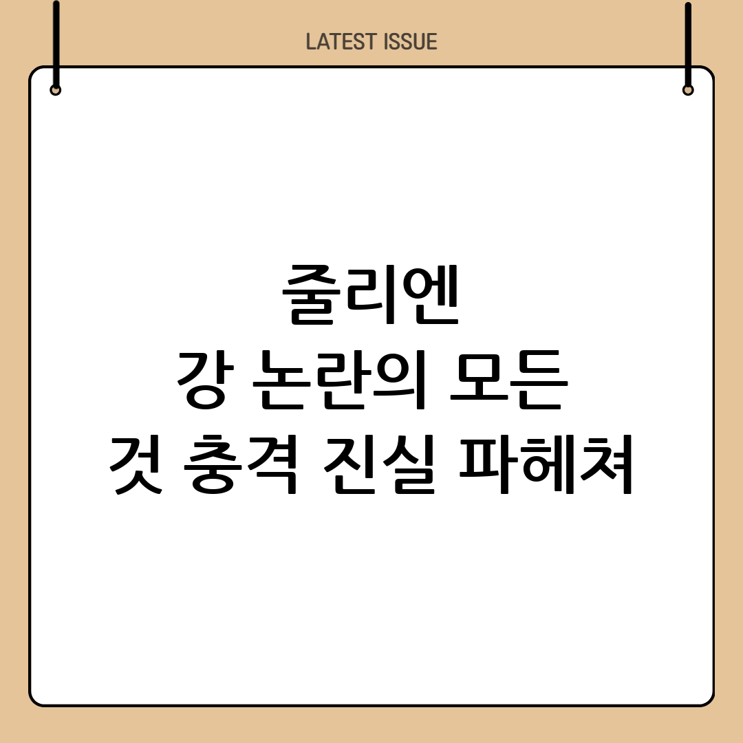 최근 온라인 커뮤니티와 소셜 미디어에서 줄리엔 강 씨에 대한 다양한 오해가 불거져 나오고 있습니다. 그의 사생활, 방송 활동, 그리고 과거 발언에 이르기까지, 확인되지 않은 정보들이 무분별하게 확산되면서 곤혹스러워하는 팬들이 많습니다. 이 글에서는 줄리엔 강 오해의 핵심적인 내용들을 짚어보고, 정확한 사실과 정보를 제공하여 불필요한 논란을 잠재우고자 합니다.
