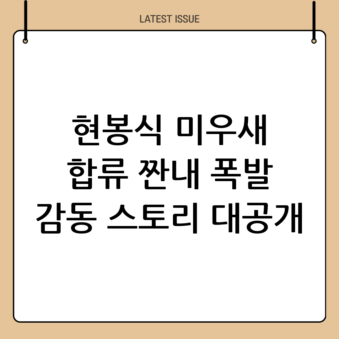 '미우새'에 합류한 현봉식은 짠내 나는 일상 속에서도 희망을 잃지 않는 모습을 보여주며 많은 이들에게 감동과 용기를 선사했습니다. 그의 솔직하고 인간적인 매력은 앞으로 '미우새'에서 어떤 이야기를 펼쳐나갈지 더욱 기대를 모으고 있습니다. 그의 앞으로의 활약을 응원하며, '미우새'를 통해 더욱 많은 사랑을 받기를 기대합니다.