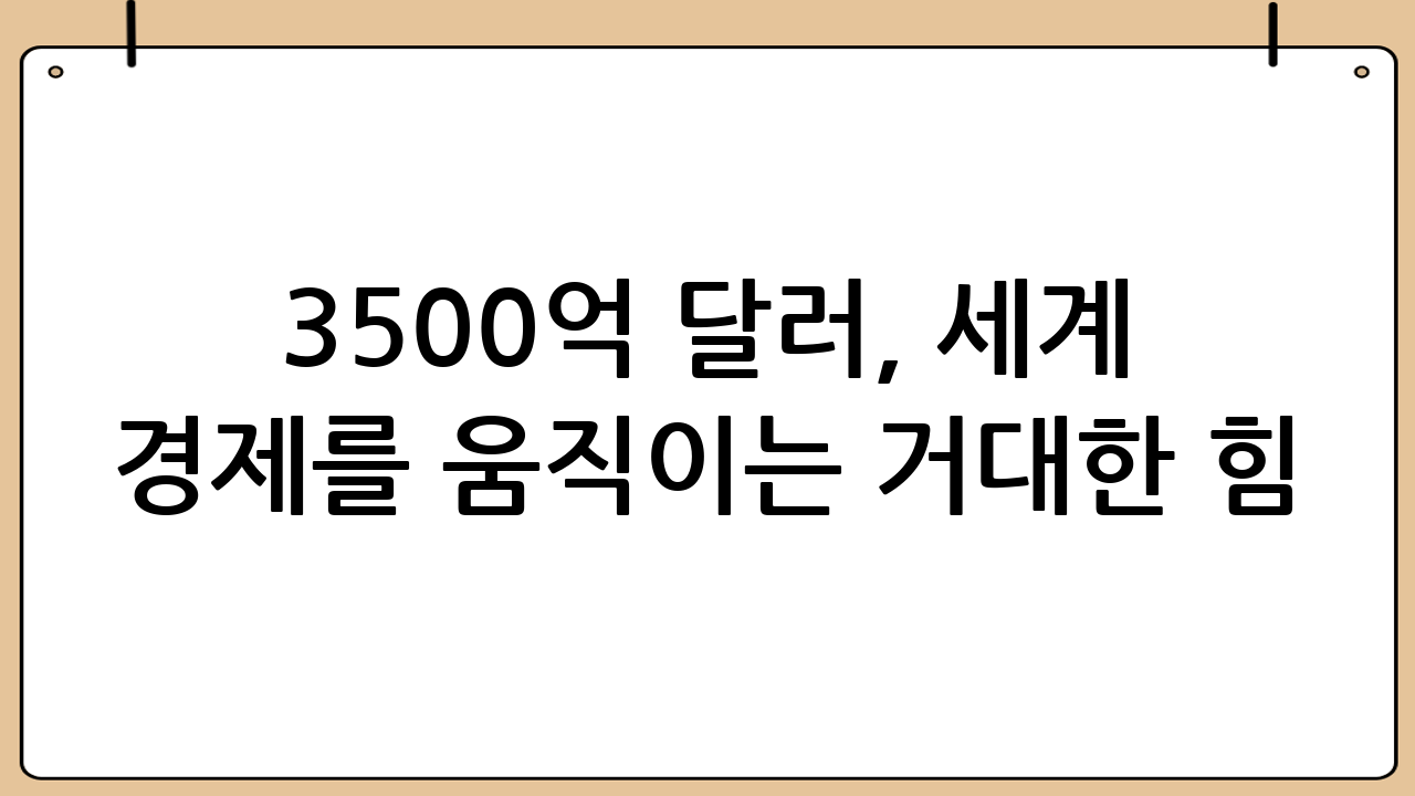 3500억 달러. 상상하기조차 힘든 이 거액은 단순히 숫자를 넘어 세계 경제의 흐름을 좌우하는 막강한 힘을 지니고 있습니다. 3500억 달러 규모의 투자, 무역, 부채는 국가의 운명을 바꾸고 산업의 지형을 재편하며, 수백만 명의 삶에 직접적인 영향을 미칠 수 있습니다. 이 글에서는 3500억 달러가 세계 경제에 미치는 다양한 영향과 그 중요성을 심층적으로 분석해 보겠습니다.